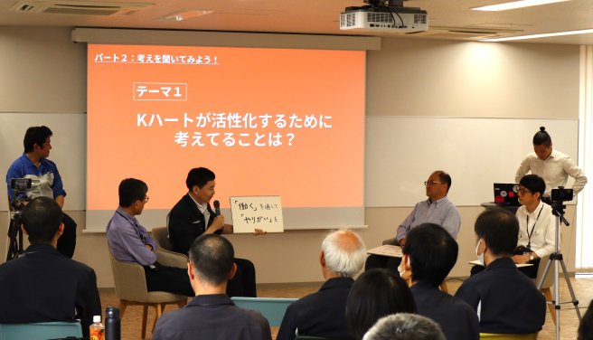 コクヨKハート内の横のつながりを強くするために、各部門長4名によるパネルディスカッションが行われました。テーマは各部の仕事紹介から始まり、Kハート活性化に向けた取り組みや、20周年記念についての熱い思いを語っていただきました。各部門長が目指している"Kハートを今よりも良くしたい"という共通の想いがKハートのメンバーに伝わった有意義な時間となりました。