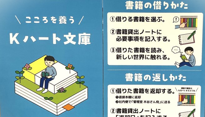 現在、Kハート2階ラウンジの一角にある「Kハートライブラリー」。仕事に役立つスキル本から自己啓発本、セルフケアやお互いの障がい特性を知るための本等々... 多ジャンルの本を貸し出ししています。また、欲しい本がありましたらリクエストして頂くこともできます。